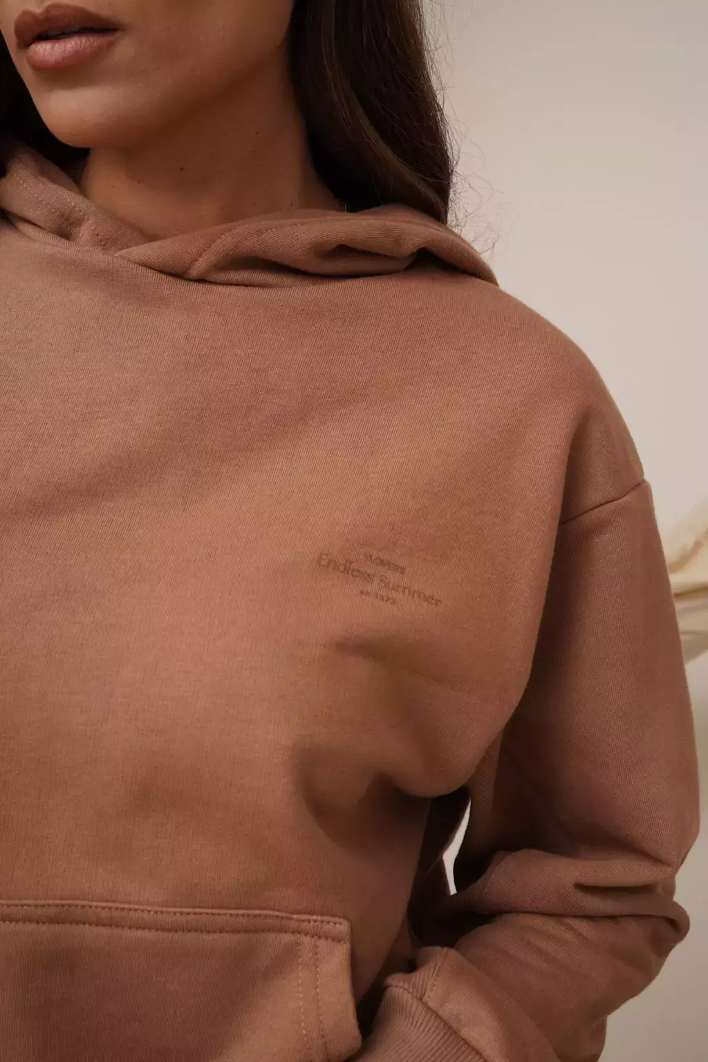 Hoodie de fit clásico, con bolsillo canguro y capucha, estampa de marca en el frente y combinación de tela en las mangas.